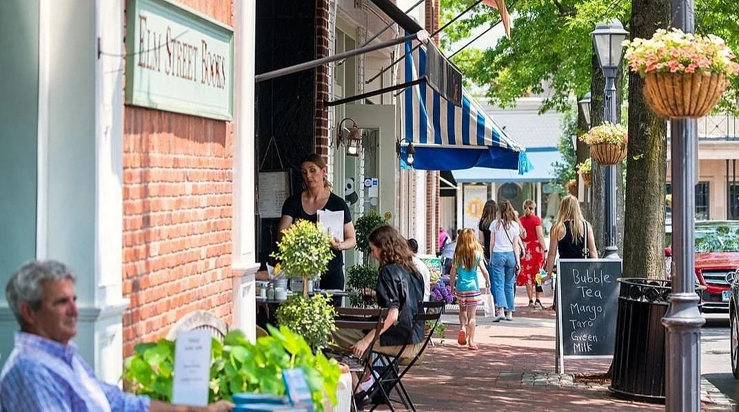 Celebrated for quality and local focus, with farm-to-table restaurants like Farmer's Table. Also popular are Cava Wine Bar & Restaurant, Elm Restaurant, and Blackbird. The New Canaan Farmers Market is a weekly event for fresh produce.